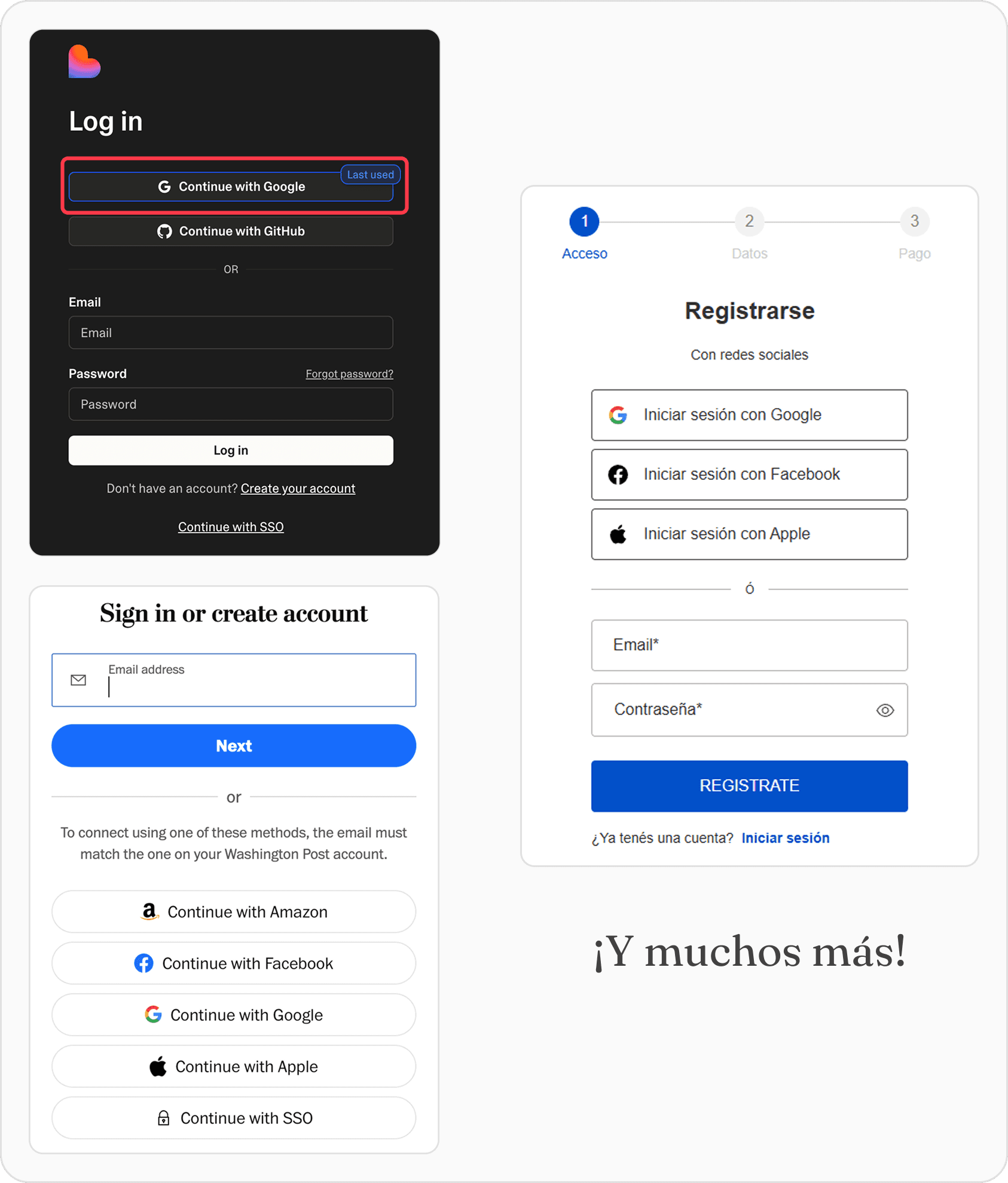 Implementamos el badge de “último usado” para informar al usuario que método de login había usado por última vez. (Previamente se validó con desarrollo si era viable guardar en localstorage esta información)
