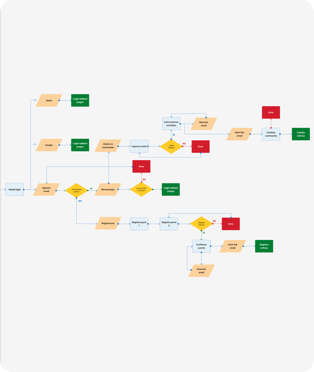 Teniendo en claro el problema, los objetivos, y finalizado el análisis de como se podían resolver lo que necesitábamos, procedimos a rediseñar el flujo de usuario, el cual nos permitió ver de manera clara todos los escenarios posibles que tenía el usuario.